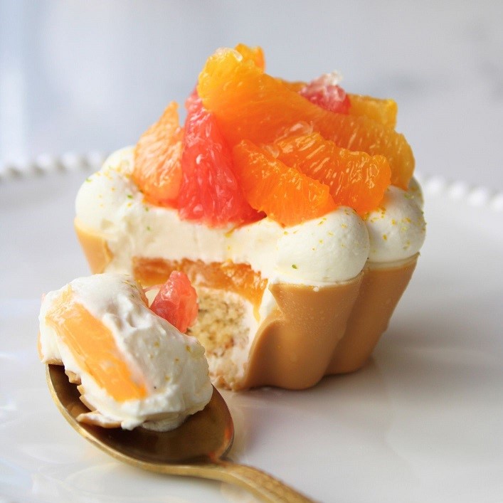 Biscuit moelleux pamplemousse, croustillant citron, marmelade clémentine, mousse citron caviar, ganache montée vanille
